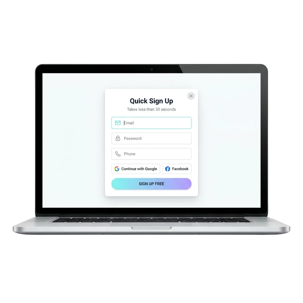 Możesz zarejestrować się przez e-mail, numer telefonu lub konto w mediach społecznościowych. Wybierz opcję, która jest dla Ciebie najwygodniejsza.